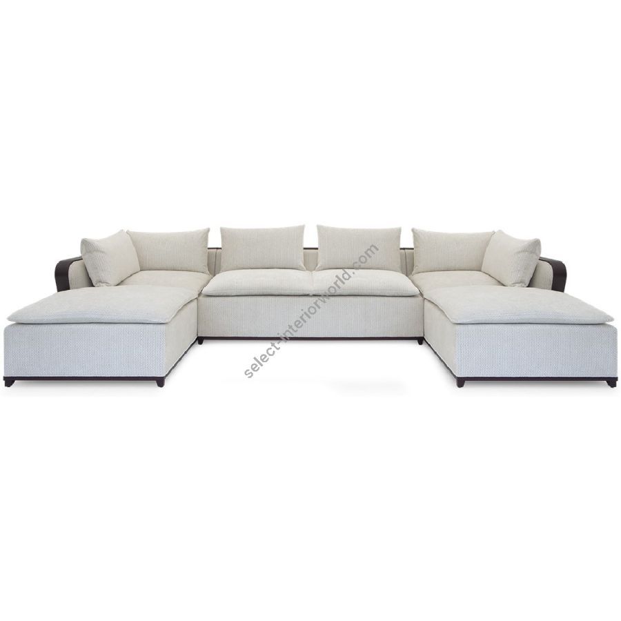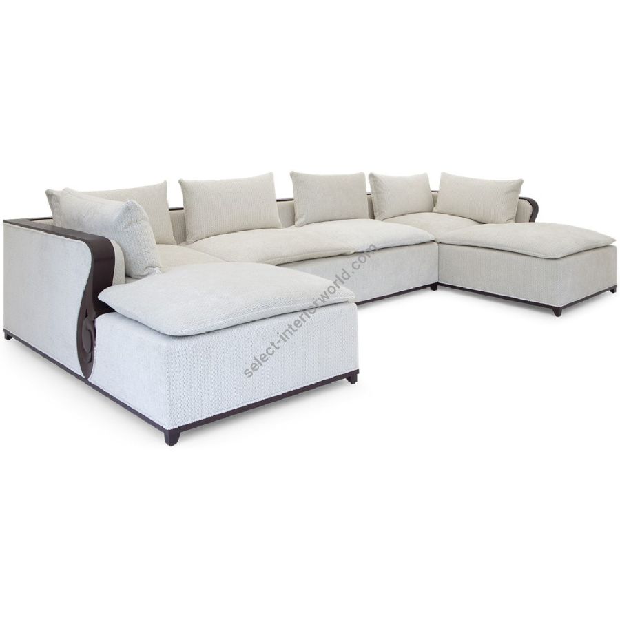 With an Art Deco elegance and restraint, this U-shaped sectional sofa features a carved wood framed straight back and deep square cushioning. An utterly chic centrepiece for setting.
