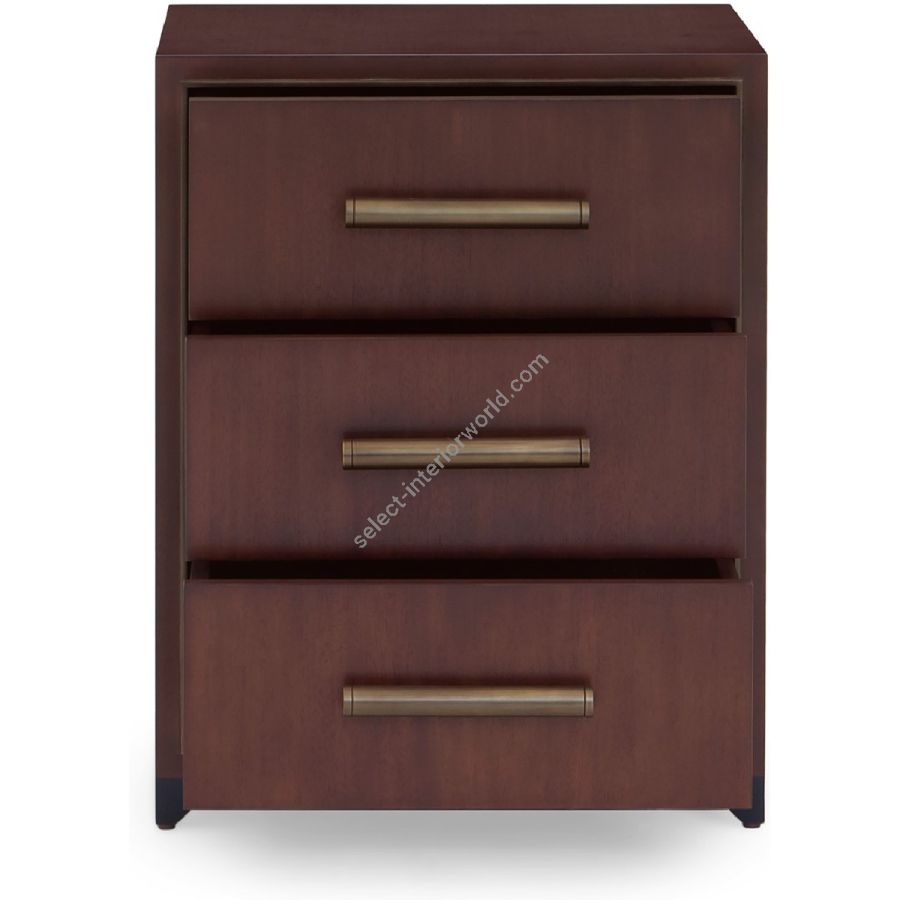 With an early 20th century Modernist influence, this understated side cabinet features 3 drawers with wooden handles in aged brass finishing. Also available as a larger chest 85-0045