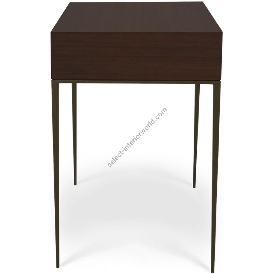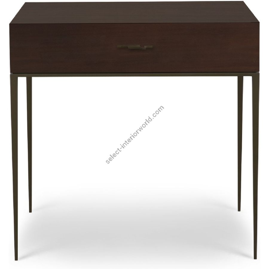 This exquisite forged metal side table features a single drawer with centered metal handle and fine slimline legs. Ideal as a nightstand.
