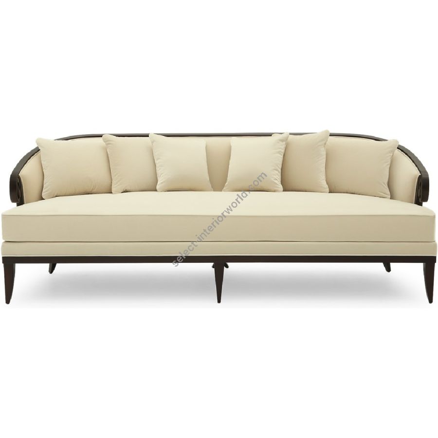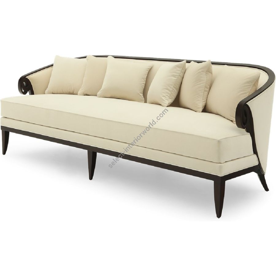 This striking sofa features hand-carved scrolls adorning the armrests that lead effortlessly into the curved hind legs.