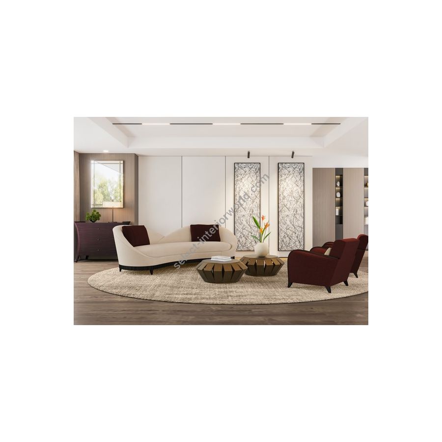 Doweled mortise and tenon frame in solid Mahogany from certified source. Sculptured by our Master-Carvers. Solid certified Mahogany. Tight seat undersupport with high-density upholstery fill. Feathered down throw pillows mixed with PolyFiber for added support. Available in a selection of finishes. For residential use only. Commercial use is classified as Special Order Design (SOD), and alternative materials may be required. Contact us for details.