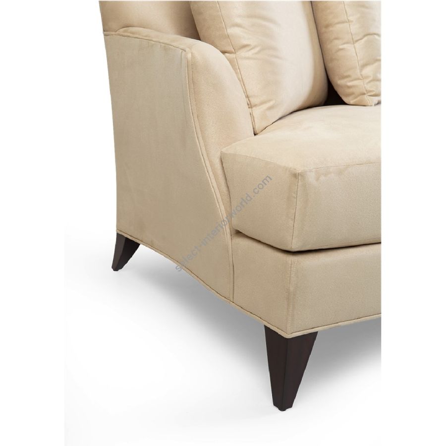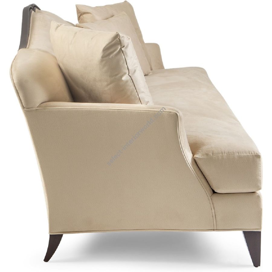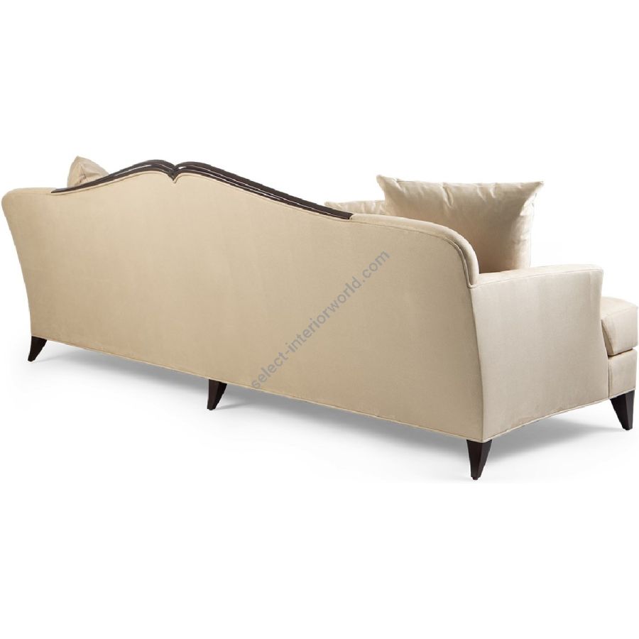 Displaying a clean and elegant silhouette, this sumptuous sofa combines upholstered arms, a single seat and a delightful hand-carved feature detail crowning the wide back.