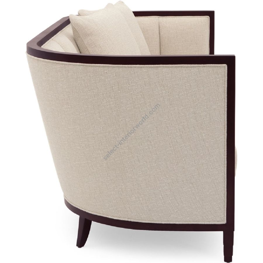 Doweled mortise and tenon frame in solid Mahogany from certified source. Eight-way hand tied spring base, with pocket coil seat cushions encased in high-resilient fill and feathered down jacket. Feathered down throw pillows mixed with PolyFiber for added support. Channeled backrest. Available in a selection of finishes. For residential use only. Commercial use is classified as Special Order Design (SOD), and alternative materials may be required. Contact us for details.