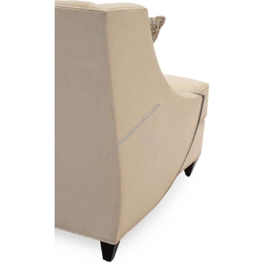 A clean and crisp square backed sofa featuring a hand carved mahogany frame with pyramid feet ideal for a contemporary mood.