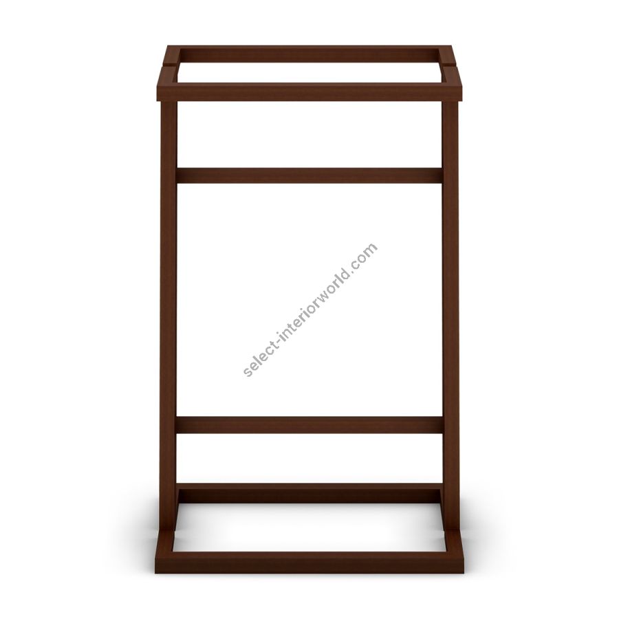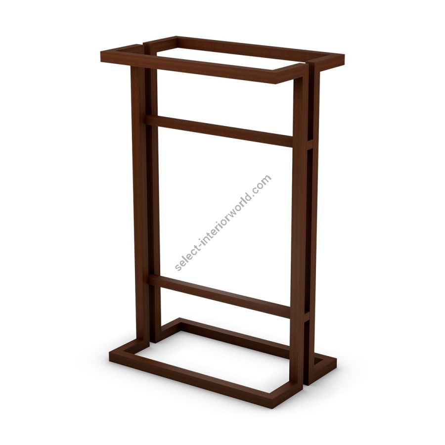 A stylish towel stand expertly crafted from solid mahogany featuring a symmetrical geometric design. The perfect accessory for any style of bathroom.
