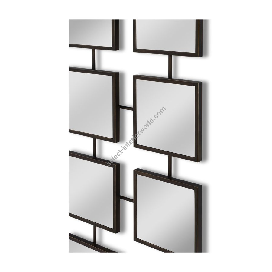 Twenty one mahogany wood framed squares joined in a grid form this monumental mirror frame, perfect to bring contemporary flair to hallways, entrances and stairwells.