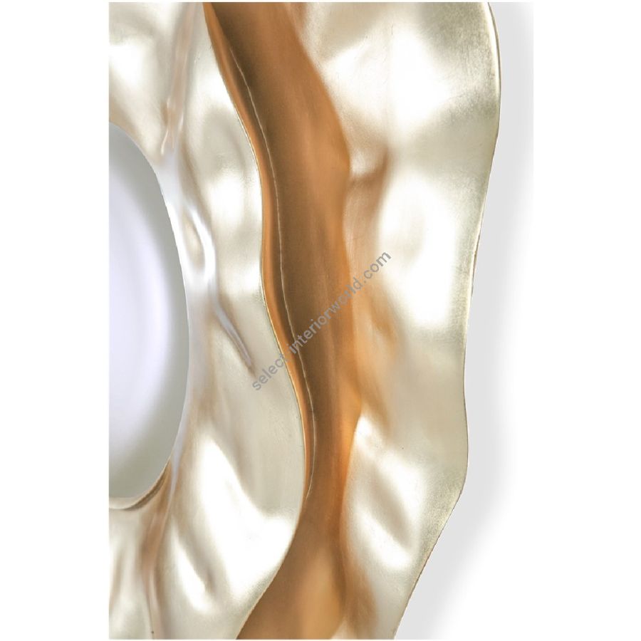 The deceptively simple hand-carved spiral of this frame displays a rich surface texture encompassing the convex asymmetric mirror pane.