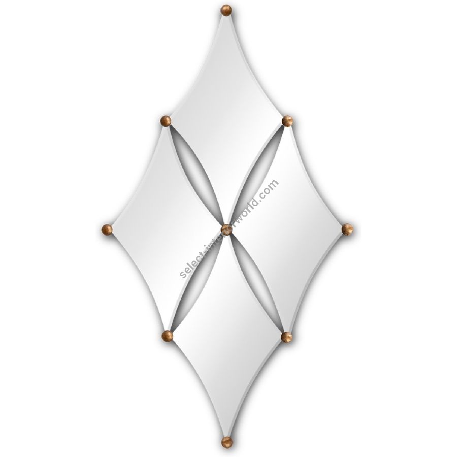 An exquisite design of four concave-sided diamond mirror panes, adorned on each corner with hand-carved beads to form one larger diamond shape. This is that ultra-rare piece which can be used to stunning effect in any style of setting and in any type of room.
