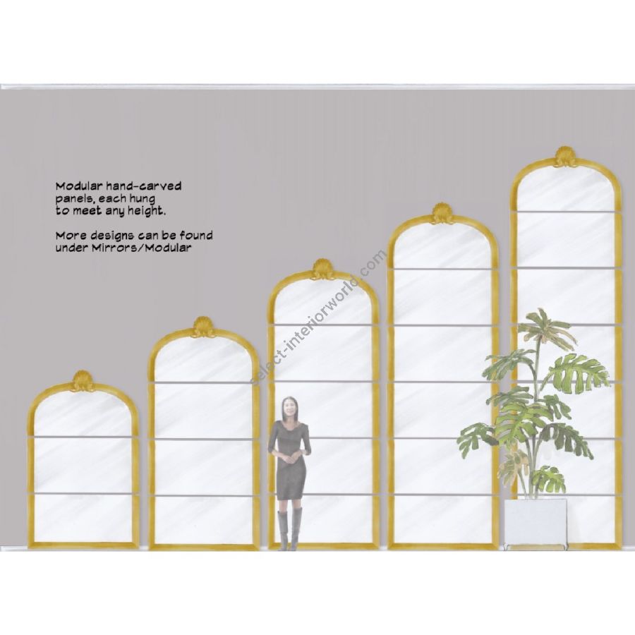 This stunning hand-carved frame includes crown detailing, with Individual central standalone panels added to create the height for any need with a gap between each panel for straightforward installation. A mirror unlike any other.