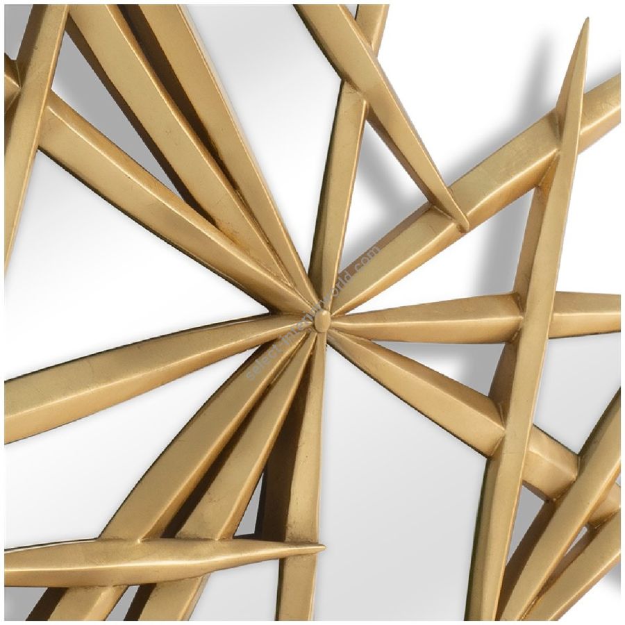 A cluster of starburst forms in exquisitely hand carved wood are scattered with mirror panes, to create a spectacular piece bridging wall art and a practical mirror frame.