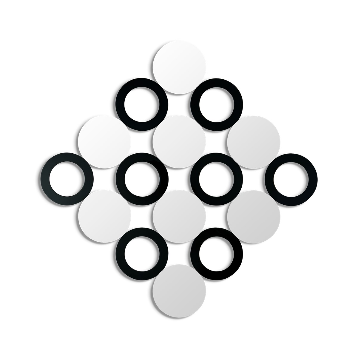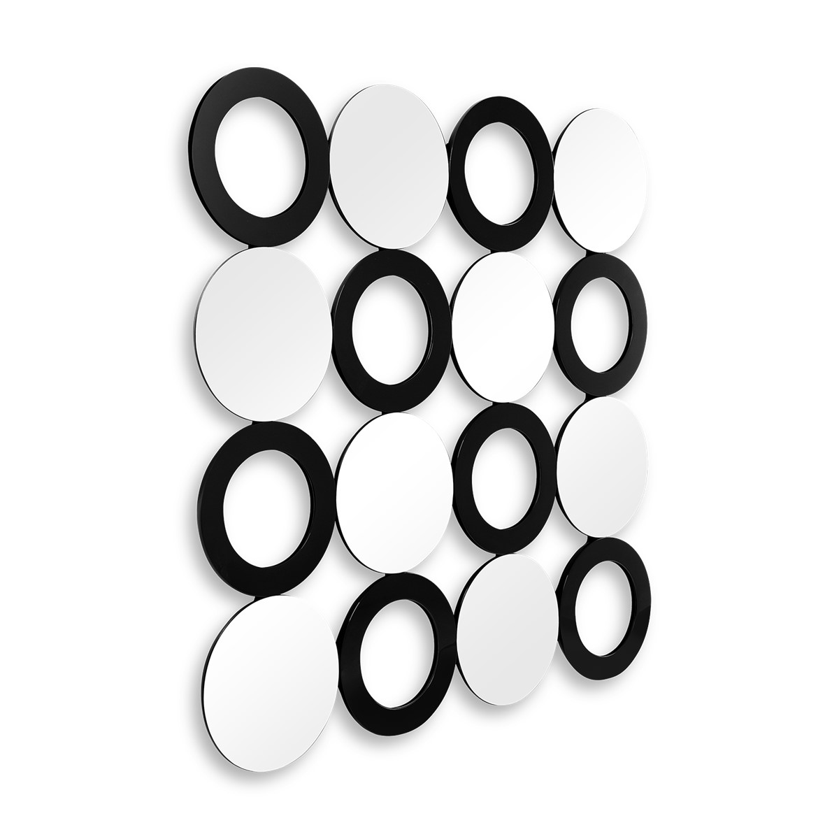 Inspired by the chainmail mini-dresses of the Swinging Sixties, this contemporary modular mirror made up of 16 discs creates a single square module, that can be multiplied to cover an entire wall of any height or width, seamlessly placed alongside or above each other.