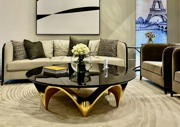 A simply spectacular sofa named in honour of one of the most influential of all Art Deco furniture designers. The main feature is a single sweeping line of carved wood that forms the legs, frame and decorative ‘U’ shaped back, mirroring Ruhlmann’s famous U-shaped desk. A new classic!