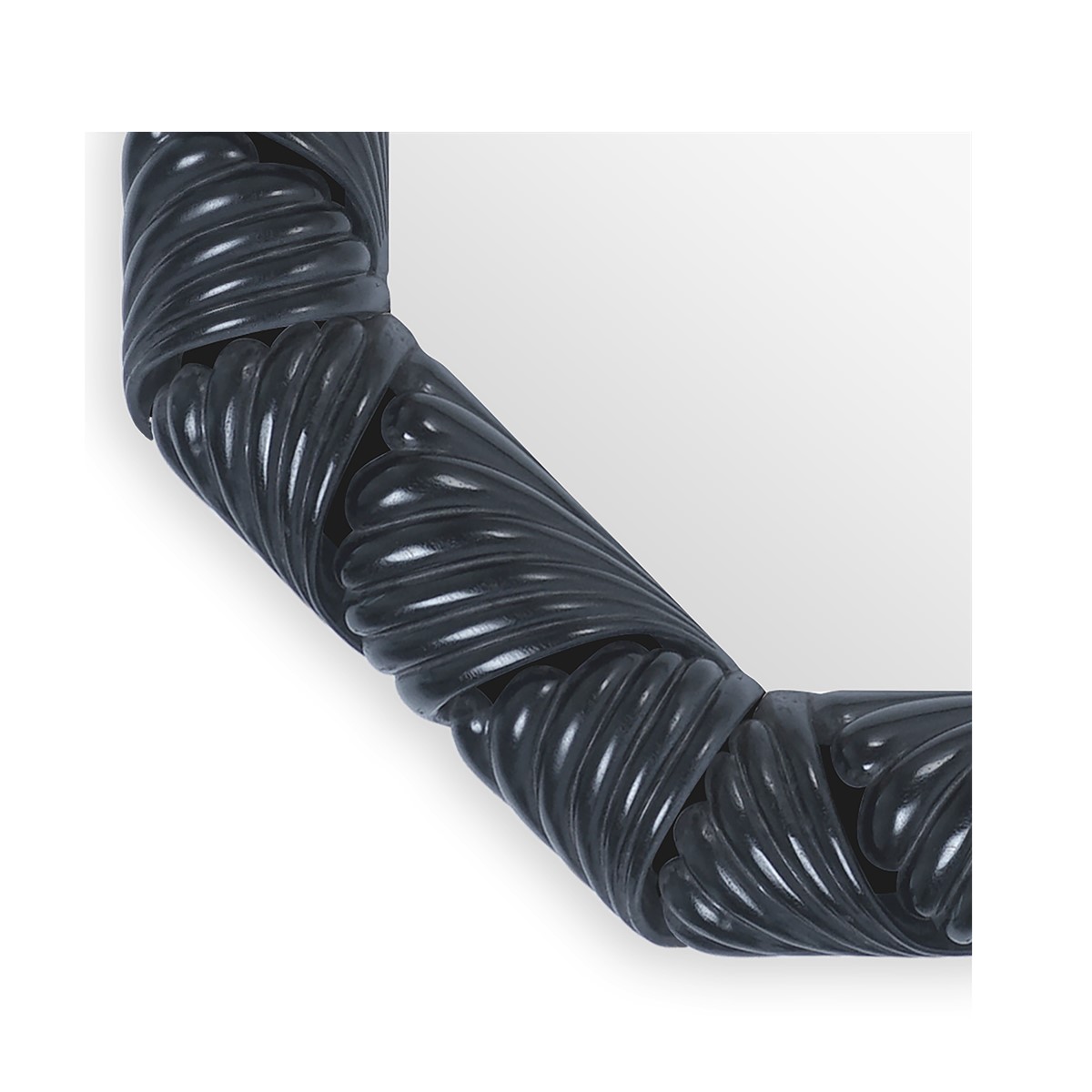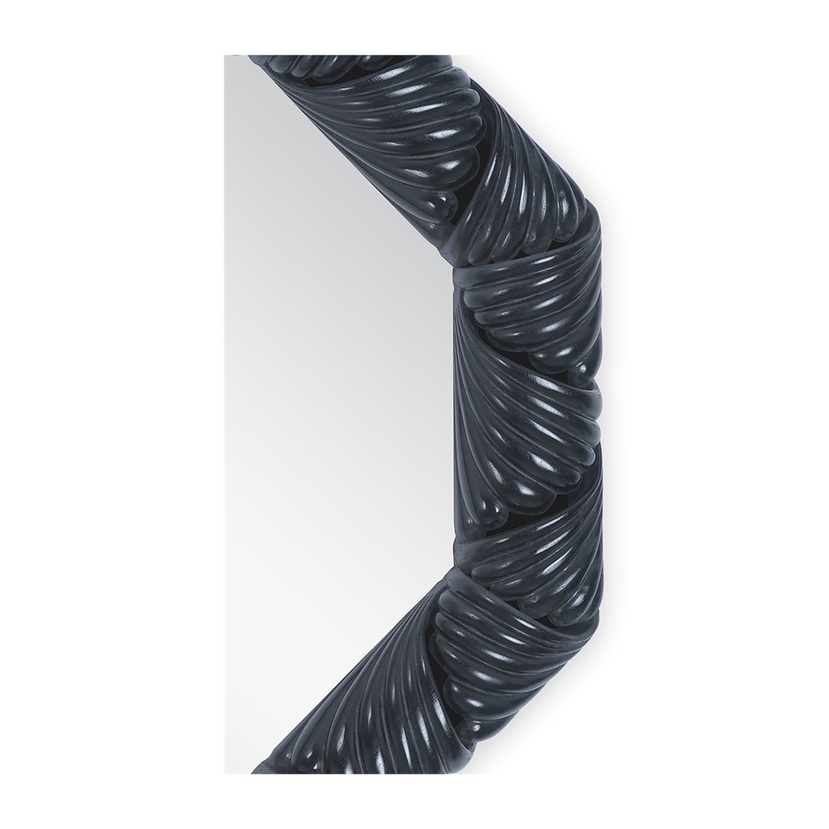 Expertly carved from wood to appear to be made of rattan wrapped around an octagonal frame, this mirror is an exceptionally intricate and painstakingly made masterpiece of craftsmanship, created to grace and enhance any style of setting.