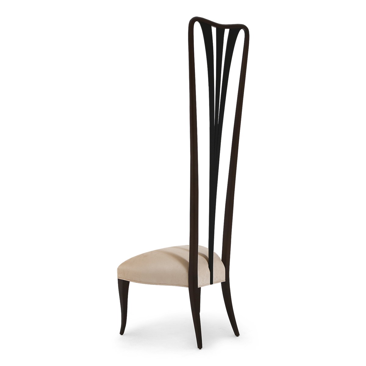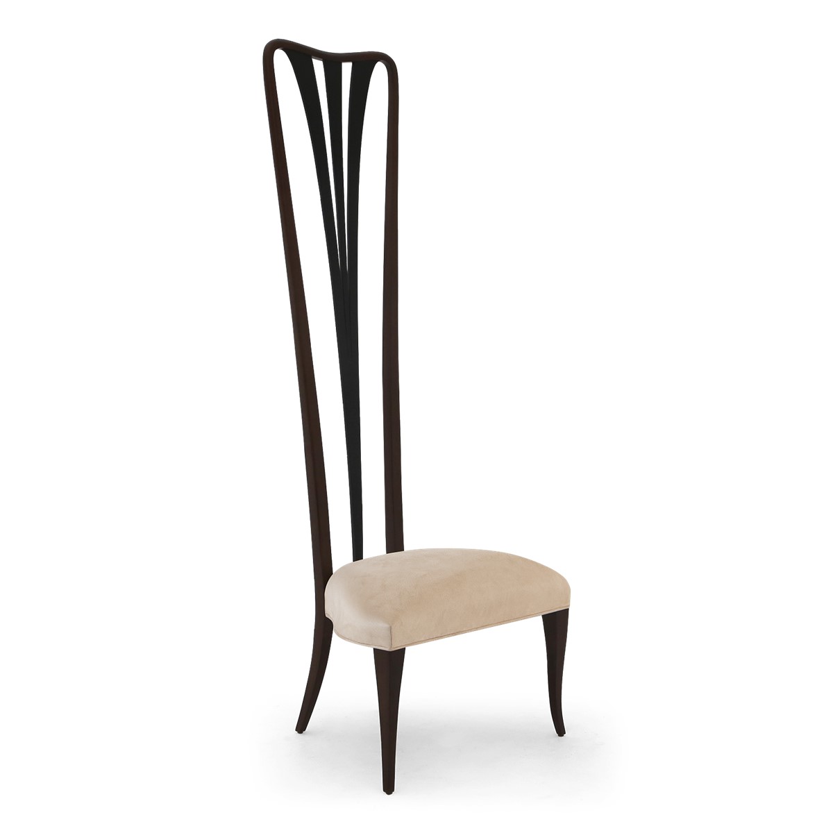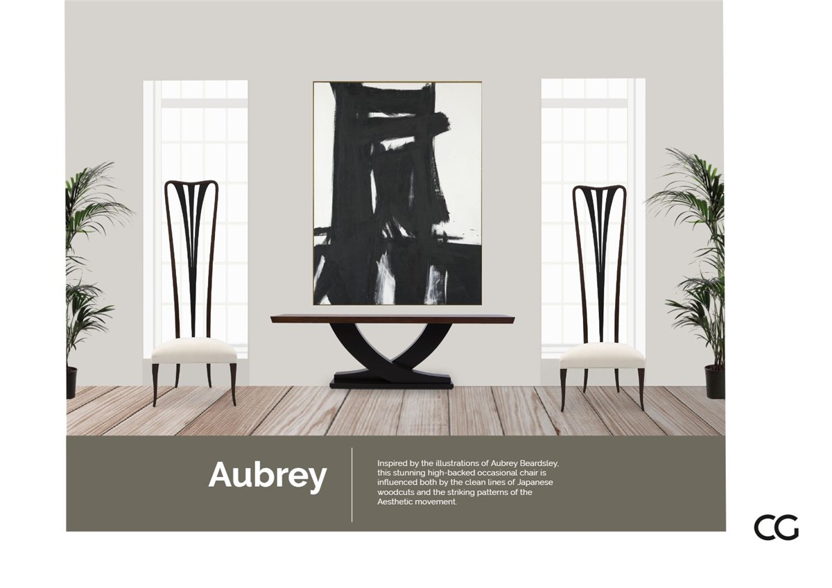 Inspired by the illustrations of Aubrey Beardsley, this stunning high-backed occasional chair is influenced both by the clean lines of Japanese woodcuts and the striking patterns of the Aesthetic movement.