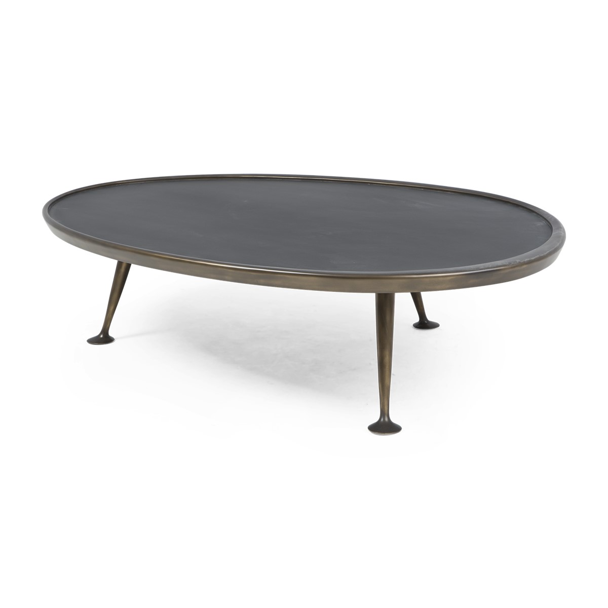 Hand-beaten brass base. Black glass top. For residential use only. Commercial use is classified as Special Order Design (SOD), and alternative materials may be required. Contact us for details.
