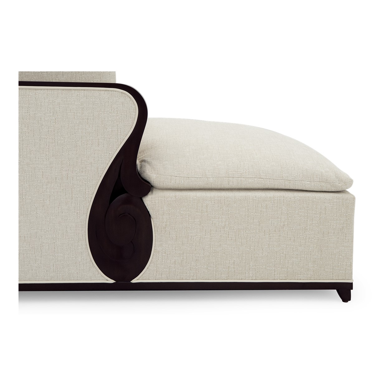 Doweled mortise and tenon frame in solid Mahogany from certified source. Hand-Carved details. Feathered down jacket with a high density core fill. Feathered down throw pillows mixed with PolyFiber for added support. Available in a selection of finishes. Sectional knockdown for spaces with limited access. For residential use only. Commercial use is classified as Special Order Design (SOD), and alternative materials may be required. Contact us for details.