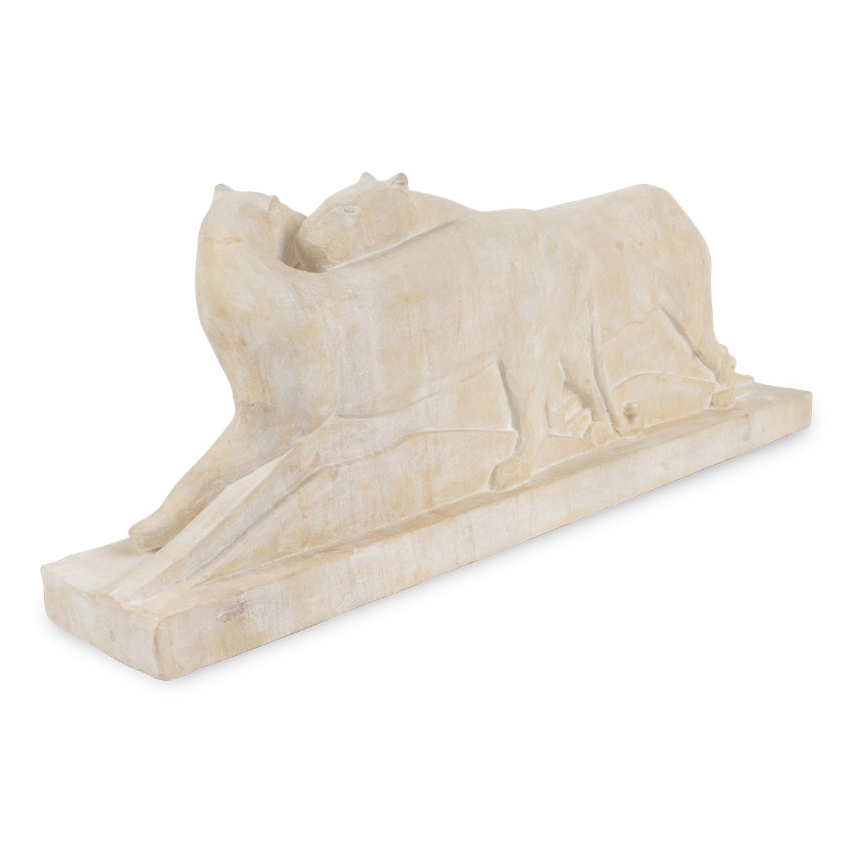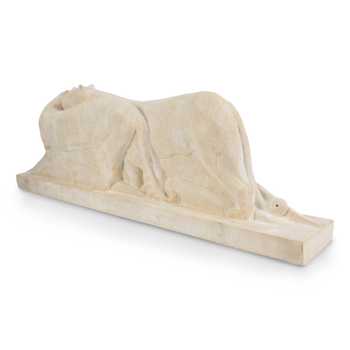 An enchanting expression of adoration referencing Coco’s zodiac sign Leo, allure and sensuality are expressed in this exquisitely hand-carved limestone sculpture.