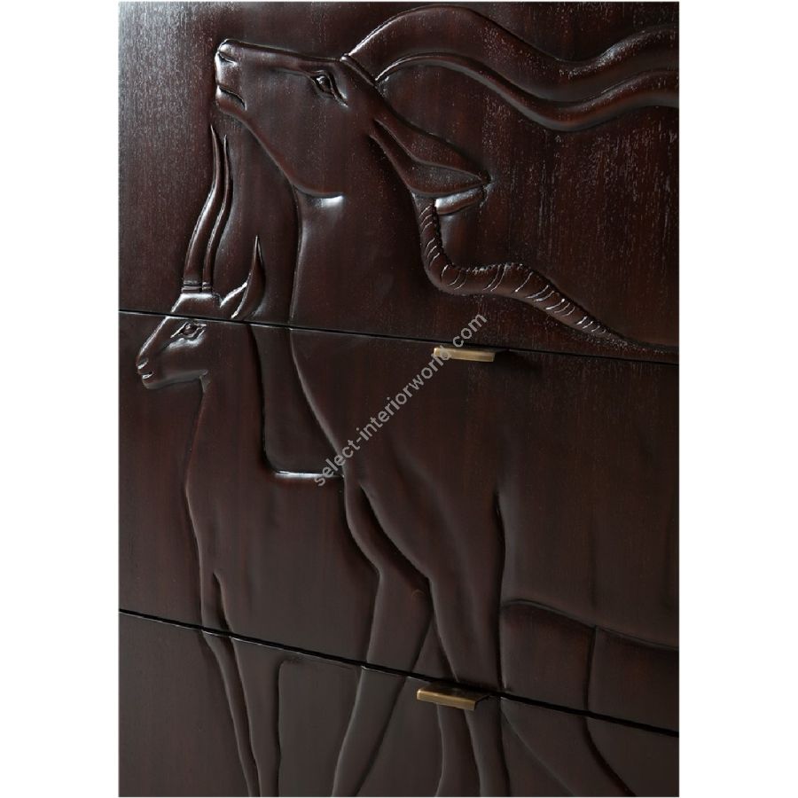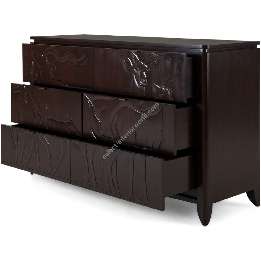 This magnificent chest of 6 drawers, part of the Savanna collection, features hand-carved gazelle scenes based on plaques at the New York Natural History Museum.