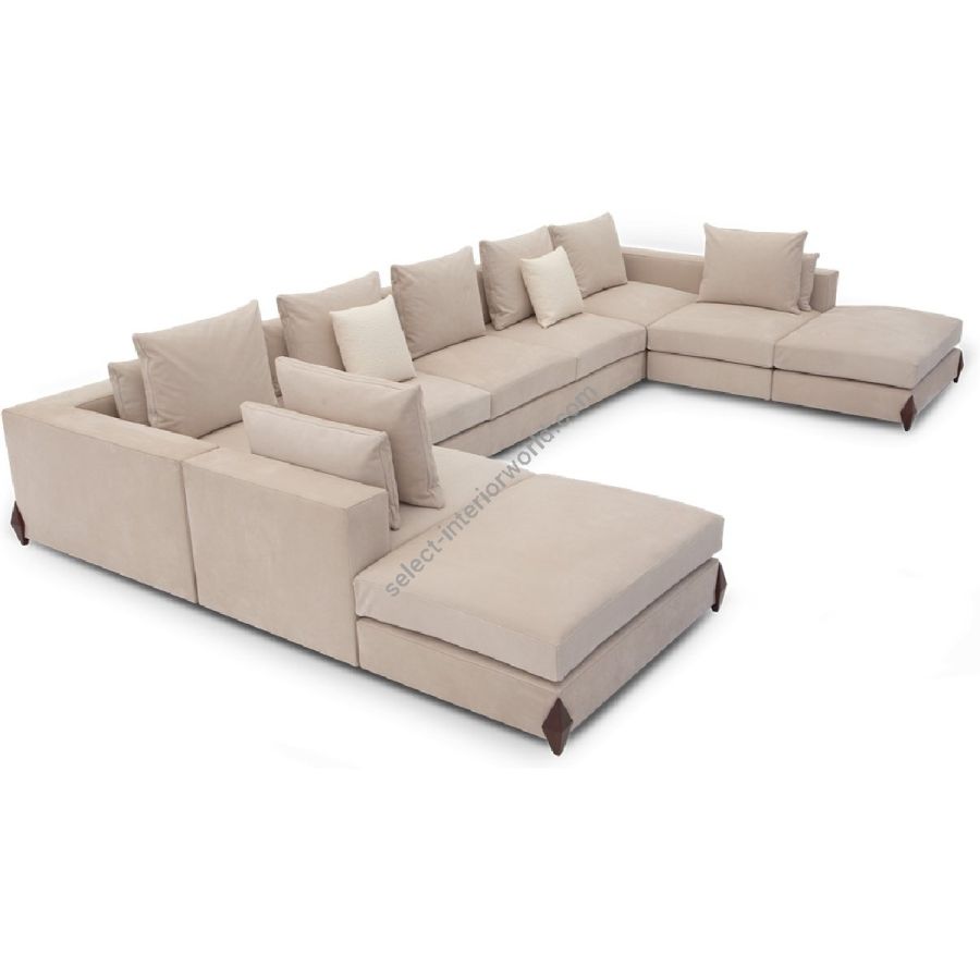 Named after the Italian master of Modernism, designer, architect, artist and publisher Gio Ponti, this U-shaped sectional with a 5-seater sofa flanked with ottomans forms part of a collection of sofas and sectional sofas. Featuring straight lines and hand-carved diamond detailing on the legs, the contemporary look is softened by the supreme comfort of CG upholstery.