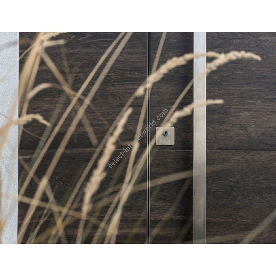 frame system, where the frame is concealed on the outside. The surface material of the ceramic front door can thus be continued on the frame or the façade.