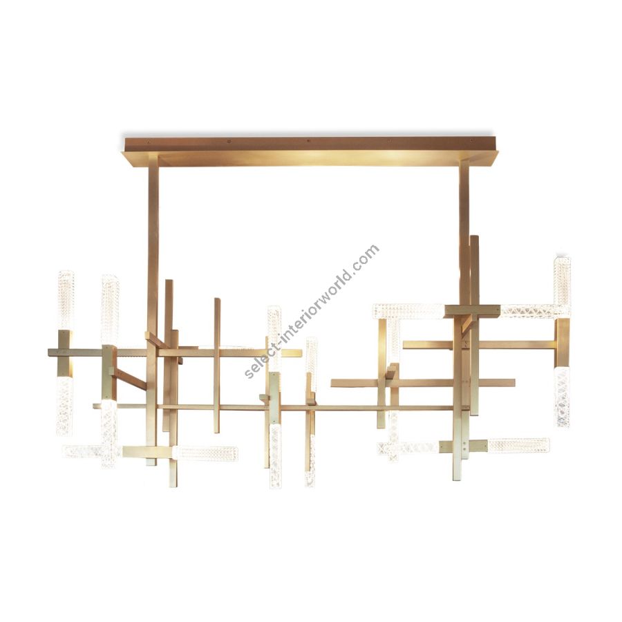 A collection of “jewel” lamps characterised by the combination of rectangular brass tubes and slanted cubes in engraved crystal, with two types of workmanship. The apparently random juxtaposition (hence the name “Mikado”) in fact follow a precise and balanced scheme. The LED sources, inserted in the tubes so as to showcase the preciousness of the crystal, make Mikado a high-performance decorative product that is compatible with home automation systems.