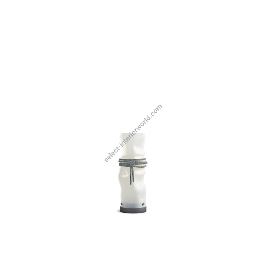 The Baggy table lamp (small and medium) has a double-satin polycarbonate diffuser with the irregular appearance of a crumpled paper tube, while the base is in grey finish. The distinctive soft textile cord in white/grey – a detail that expresses the brand’s archi-decorative stylistic code – becomes a joining element for the table and floor variants adn supports the lamp in the suspended version. The product is available in two heights: 30 and 60 cm.