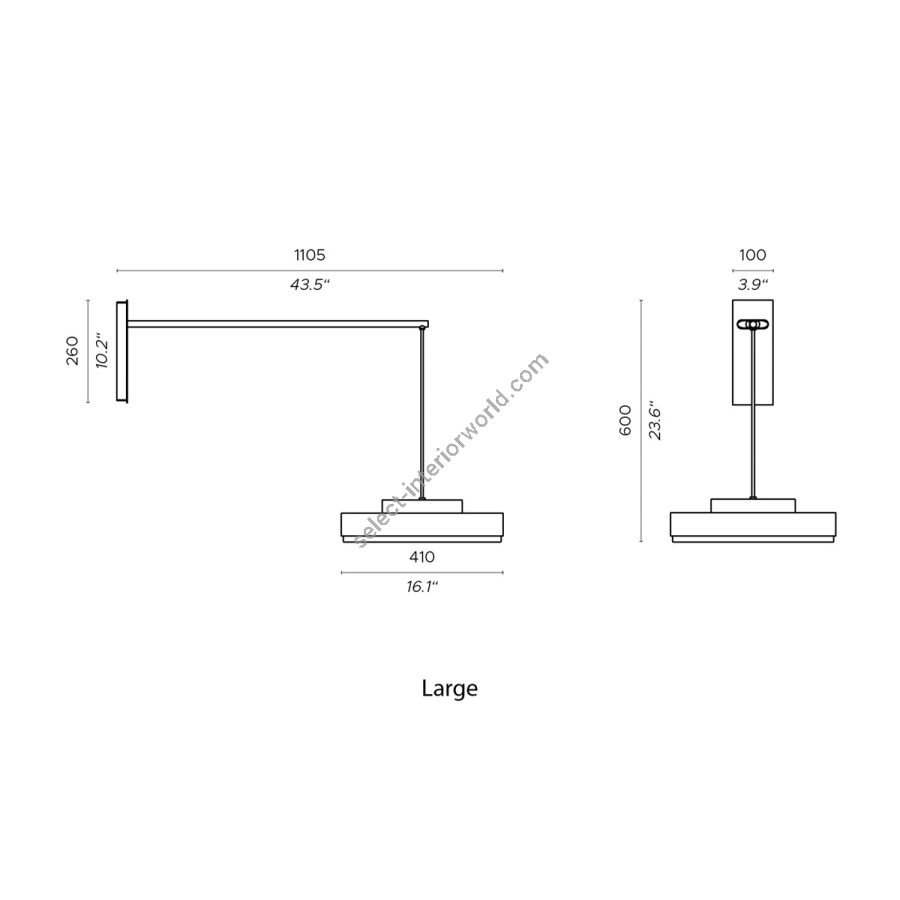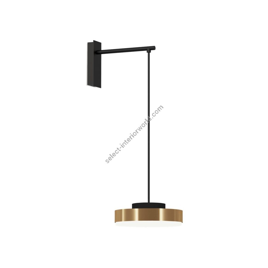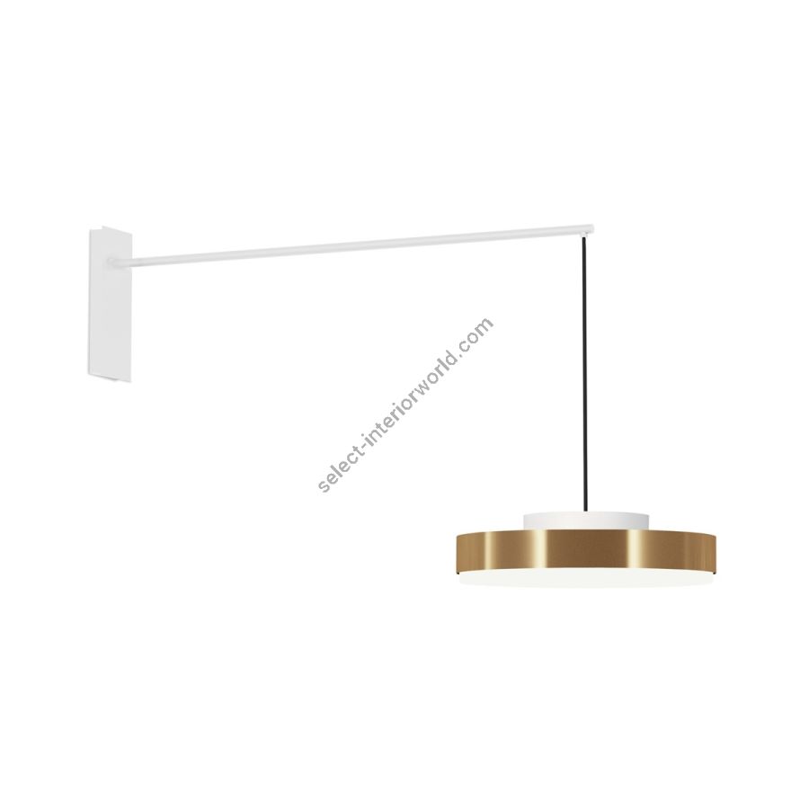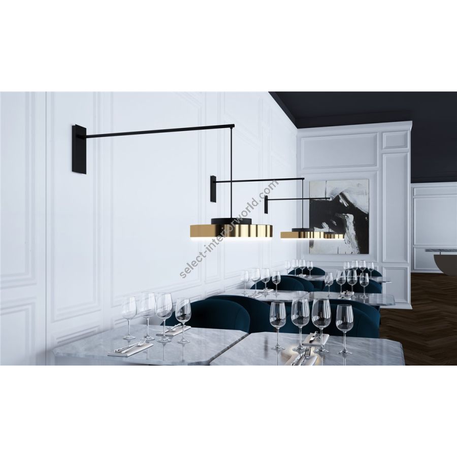 Born from the research conducted by MKV Design Studio, Discus is offered in three variants of different sizes: suspension, applique and ceiling. This product range boasts a minimalist look, with a decisive and dynamic graphic line where light, shape and decoration frame the space in an evocative and contemporary way. Two metal discs, which can be white or black, enclose the illuminating source in an interlocking game. The white opal diffuser in the middle is framed by a semi-polished brass band that gives a touch of luxury to the design. The particular shape of the structure, which in the wall version has a 120°rotating arm, allows the light to spread uniformly over the entire surface – this makes the product ideal for any location and use, in both residential and high-end hospitality contexts.