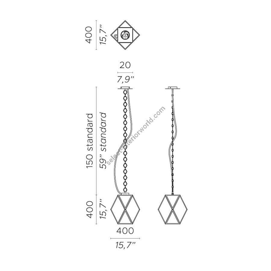 The bronze finish of the Muse Lantern has been treated to withstand outdoor spaces and atmospheric conditions, with a handle in woven leather. The plastic diffuser in the Outdoor version remains in a transparent amber finish.