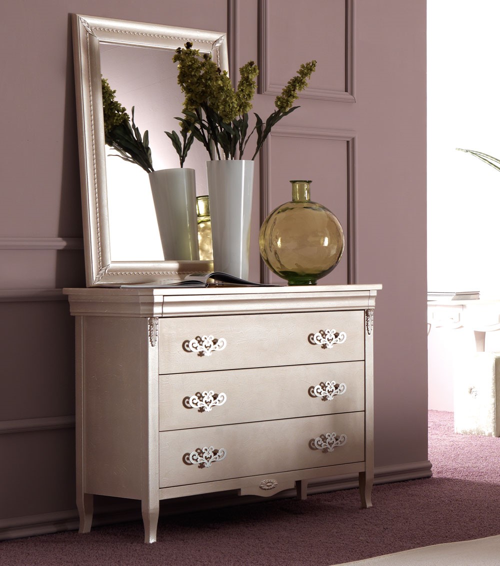 Aclassic mirrorwith a solid wooden frame and corner leaf carvings available in a wide range of hand-made finishings.Ines mirror is perfectly matching with the bed of same collection for special ensambles but it is also impeccable by itself.