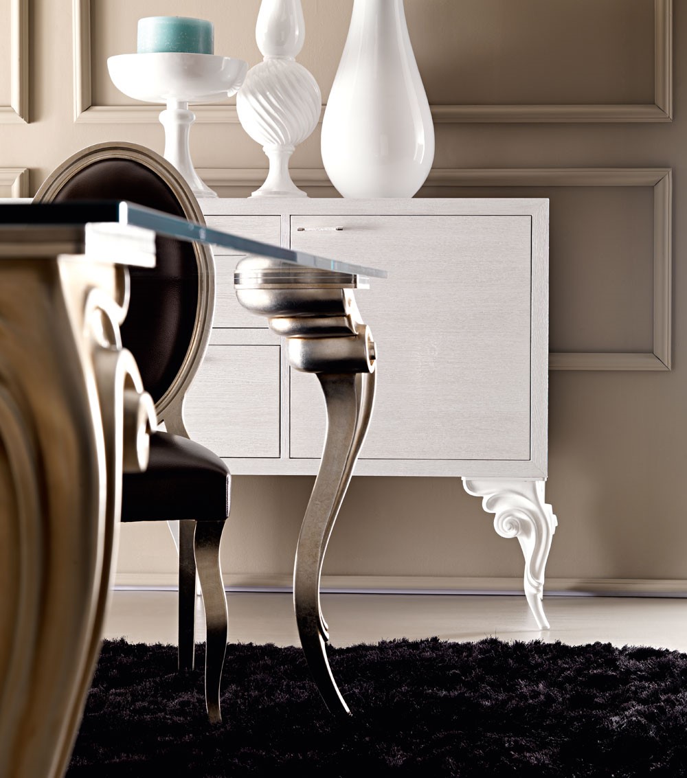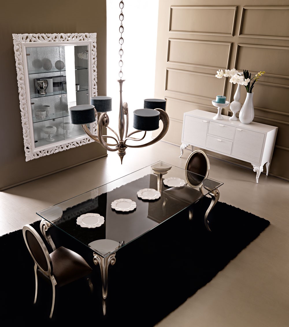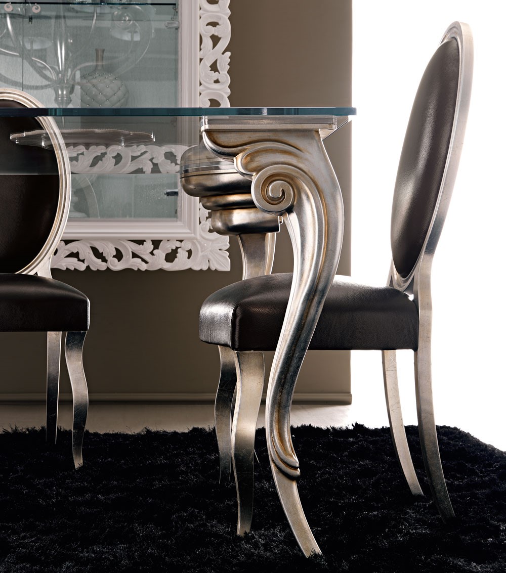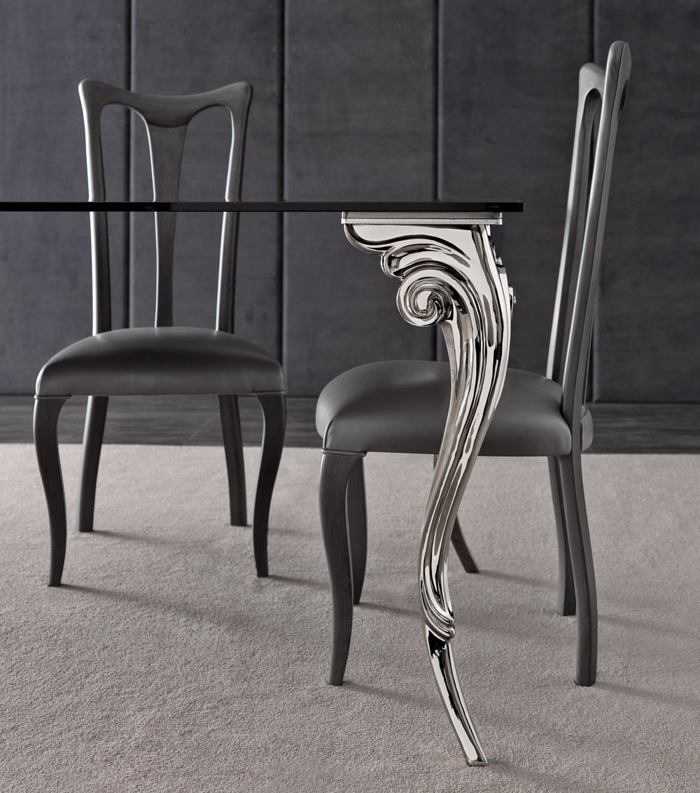 Classic and traditional symbols, typical of the Renaissance period, reintepreted in a contemporary way: this is the Antares, a real protagonist of this collection of tables and console tables. A unique twist on what we know traditionally when we consider a dining table, creating a dramatic effect. These curved exquisite lines are intensified by the sculptural effect of the metal casting. The stunning curves and elaborate design of these legs make Antares collection unmatched and unique in its category. A large range of finishings for the legs and a flexible proposal of wooden, glass, marble, mirrored tops makes this table perfect for every classical or contemporary setting.