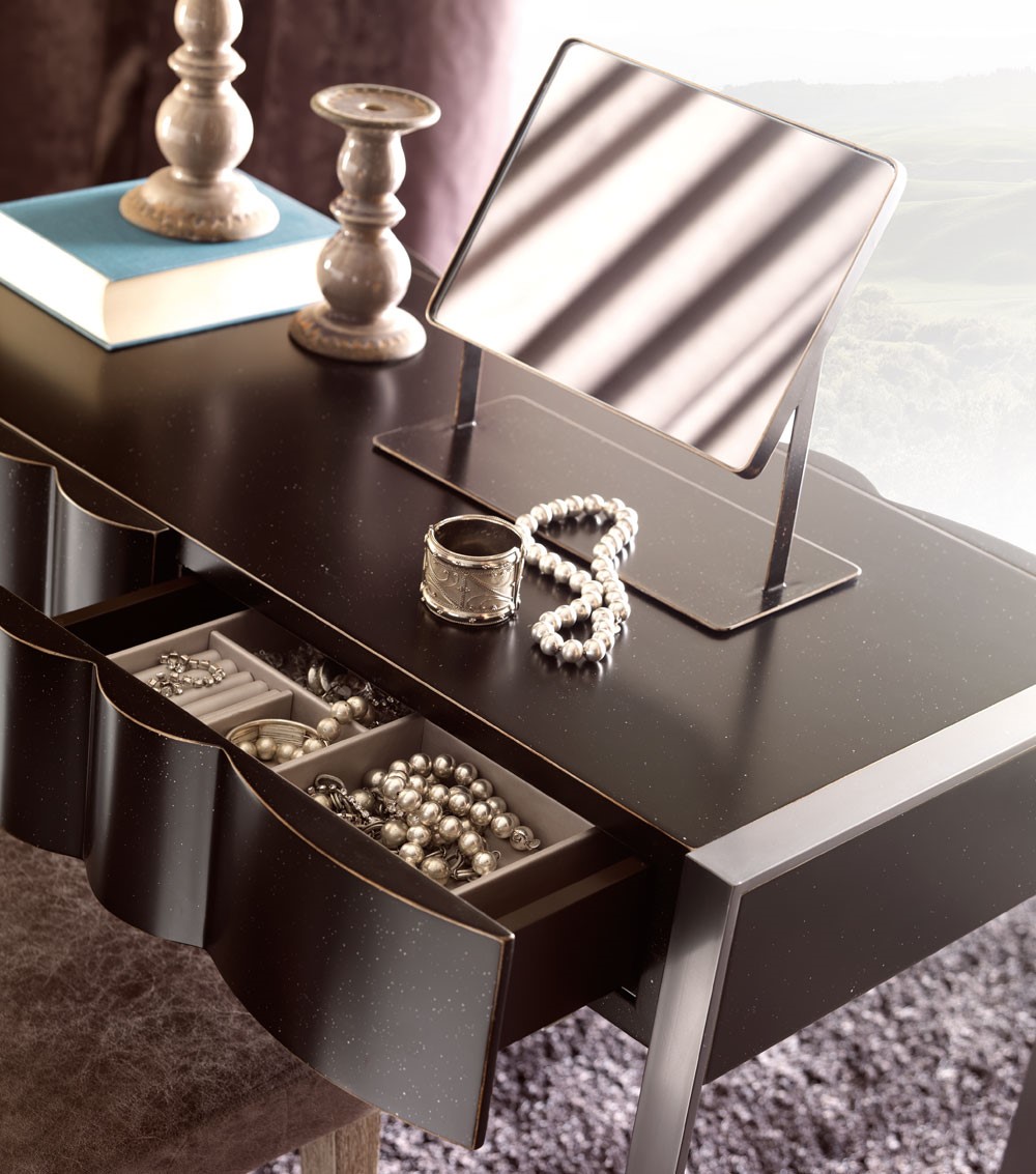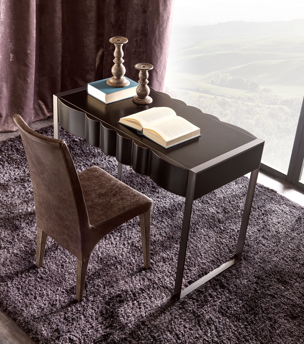 Leon is an emotional and passional collection: every element reveals the intelligent drawing, the comfort and luxury essence of its design. The writing desk is available in a wide range of finishings to be combined with likewise incredible finishings for the iron legs. Matching perfectly with the many items of same collection, it creates an impeccable proposal for modern or contemporary bedrooms.