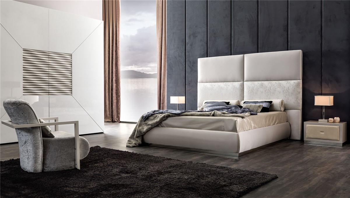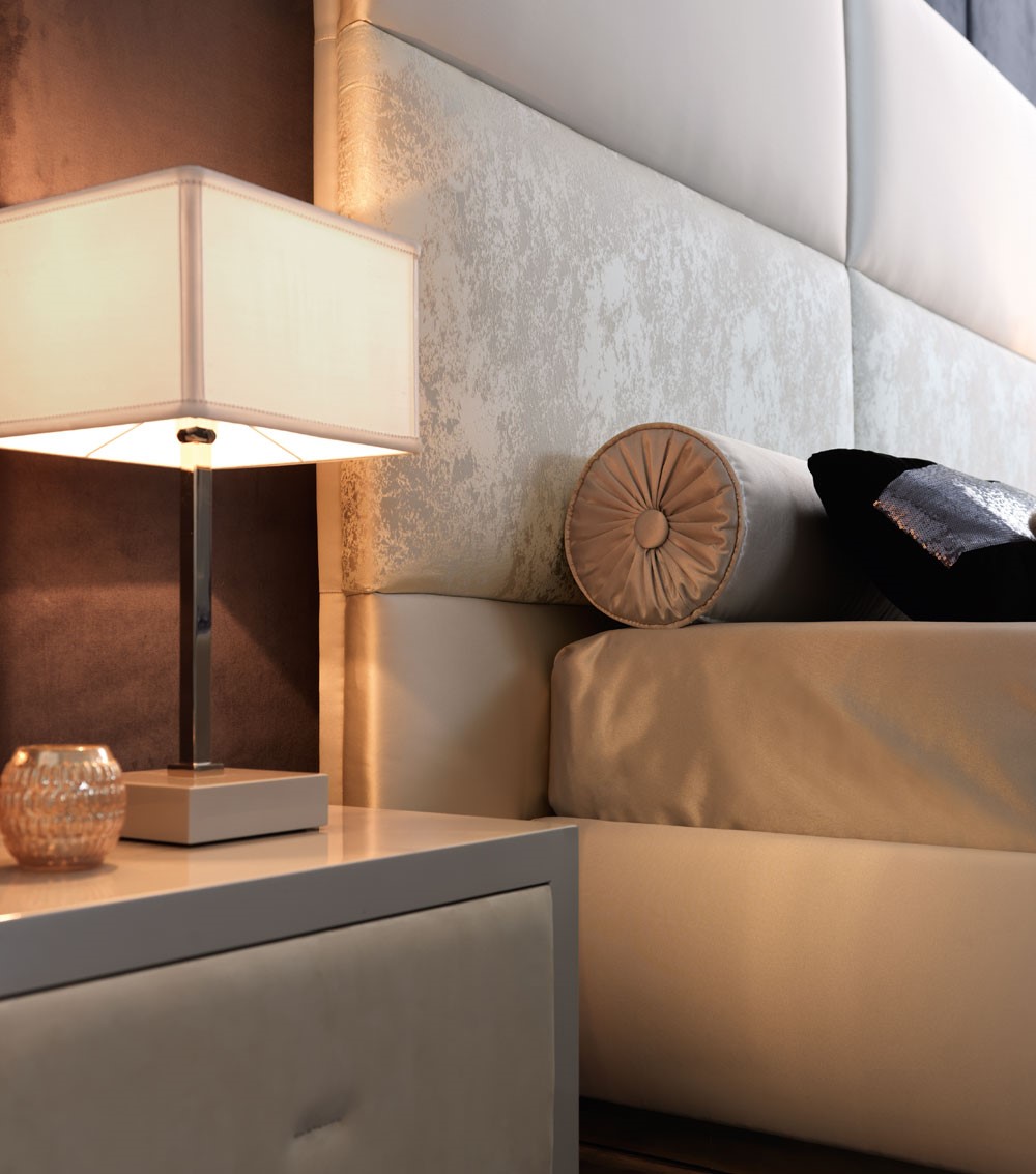 Comfort and dynamism: Thara is tall, linear, formal. One of a kind for the neverending solutions given by the interchangeability of upholstery for bedhead panels. It will be simple to satisfy every customization desire. A new, timeless classic.