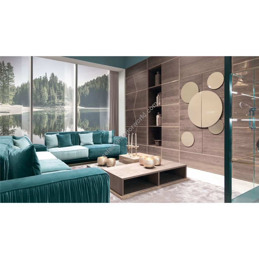 Brick is the ensemble of monolithic coffee tables with a prominent plinth that surrounds the composition creating a single visual element. The projetting base surrounding each block is in metal and joins the composition or helps each element to live as a separate one. Choose the different finishings from the wide sample set.