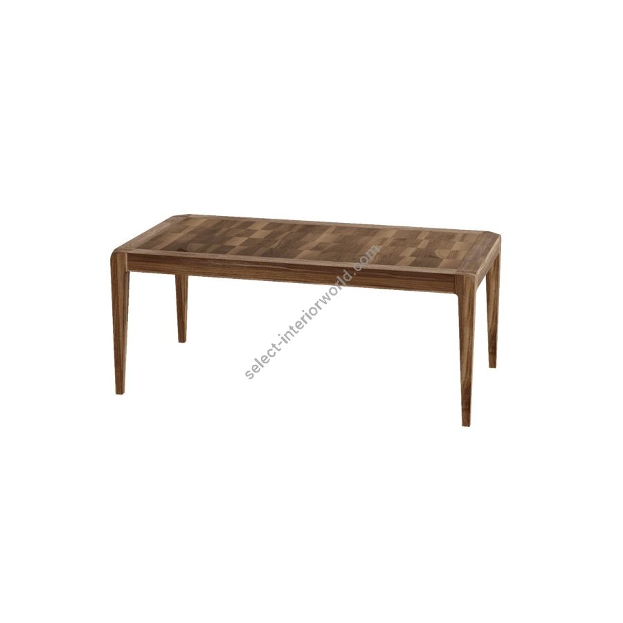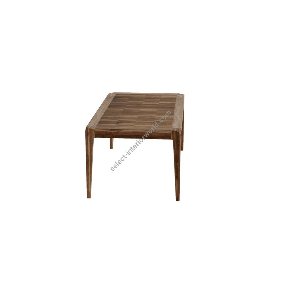 The Sentiero extendable table in solid wood is the expression of contemporary design and high quality Italian craftsmanship. Rectangular in shape, it features structure and legs in precious gray or natural walnut with inlay and wood finish. The possibility of being extended by means of under-top bands guarantees versatility and practicality. An essential, elegant and informal table.