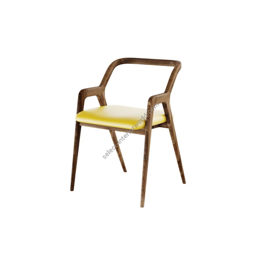 A solid wood chair with a refined Italian design, synthesis of craftsmanship, passion and attention to details. The walnut wood is hand-worked with extreme care and it feels almost soft to the touch thanks to the curved lines of the structure. Customizable lining in top quality leather or fabric and in different colors.