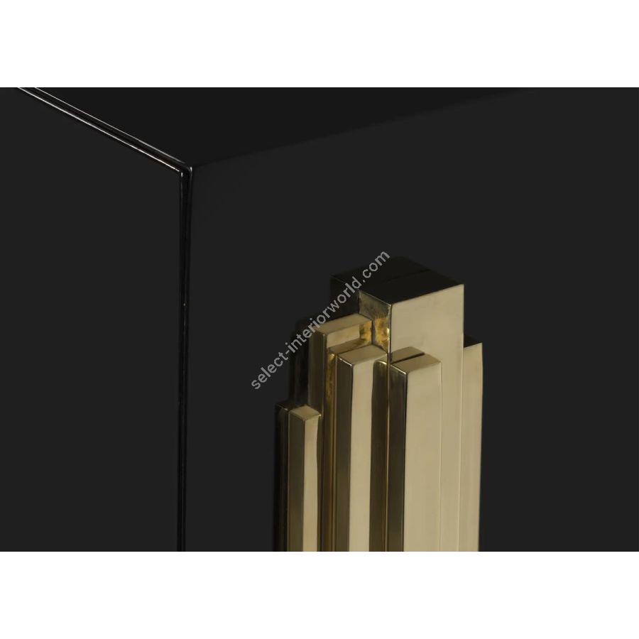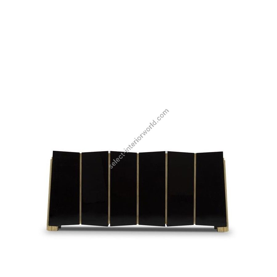 The Darian Sideboard draws inspiration from the power of the shield and sphere of protection, as well as the dynamic nature of its irregular shape. With precise knowledge of production techniques and materials, each with different specialties, from metalwork to wood carving, this piece showcases exceptional craftsmanship. It features a cluster of polished brass asymmetrical bars enveloping a wood structure in black lacquer, resulting in a captivating blend of artistry and strength.