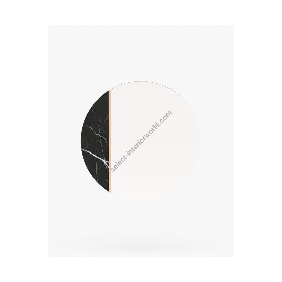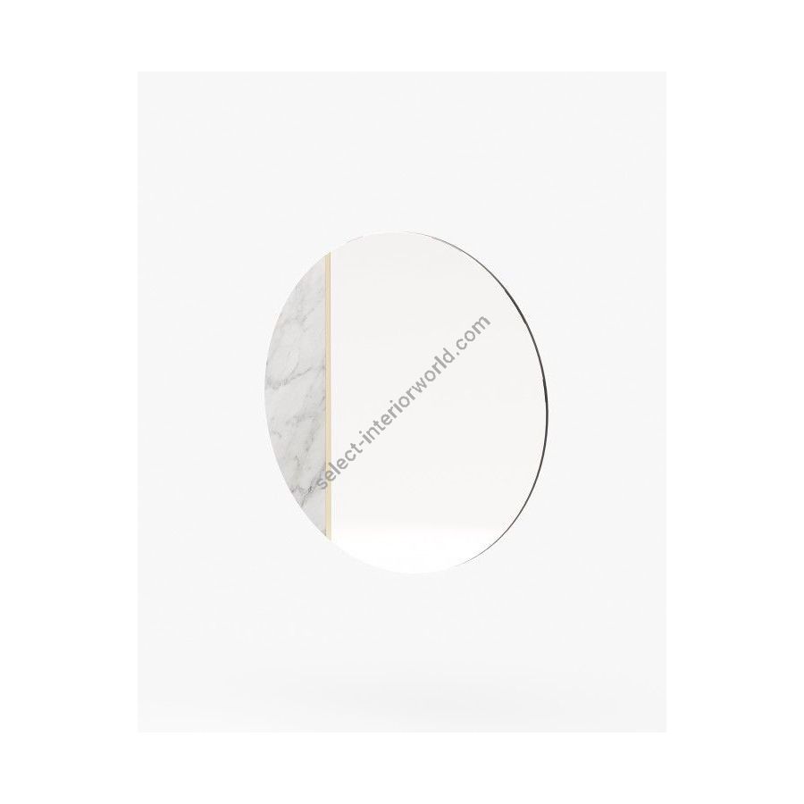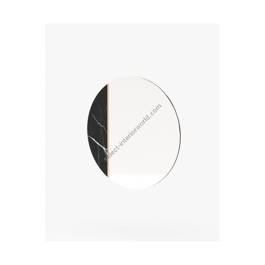 Rosane mirror is a unique wall mirror that challenges conventional design and creates a beautiful space. The circular shape of this mirror is made from a mix of materials, including marble and metal, and features a thin metal line for added sophistication.