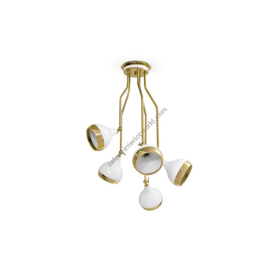 Hanna is a Vintage lighting fixture that will enhance your Home decor. Handmade in brass by talented artisans, this suspension lamp has five arms with bell-shaped shades, that can be adjusted to redirect the light. A unique functional and decorative lamp that can be used as a finishing touch in every space. Brighten up your Home decor with this classic and Vintage pendant Lighting piece that will suit any home design or room. A unique suspension lamp that will shine even when it is switched off.