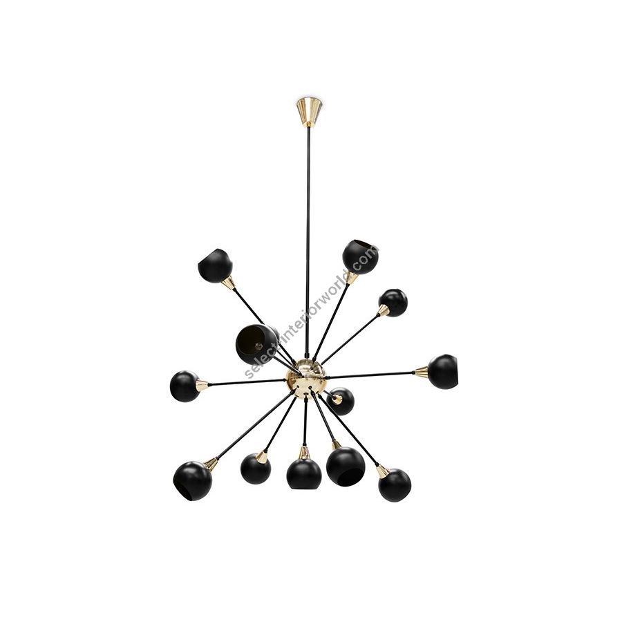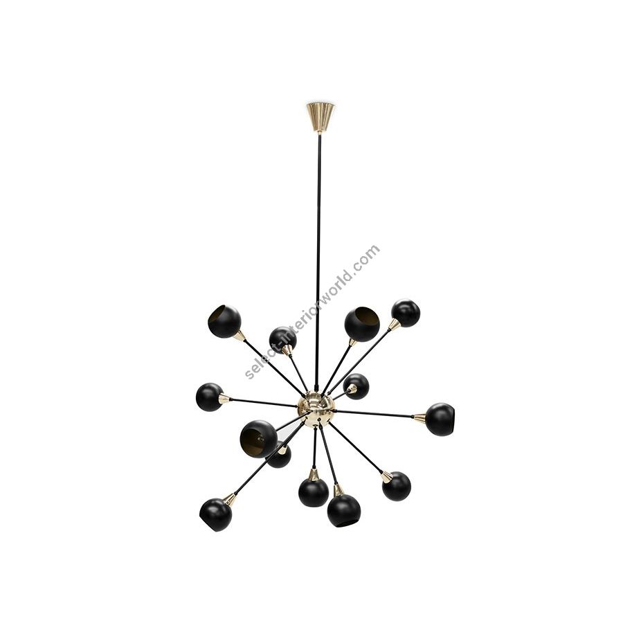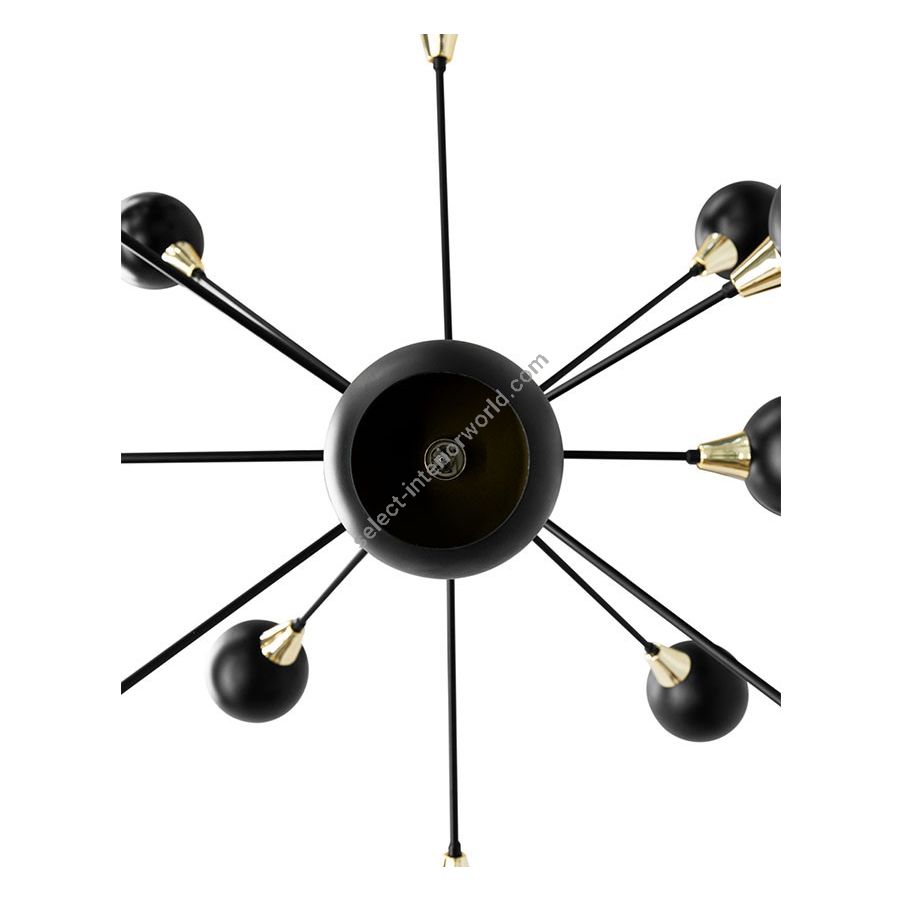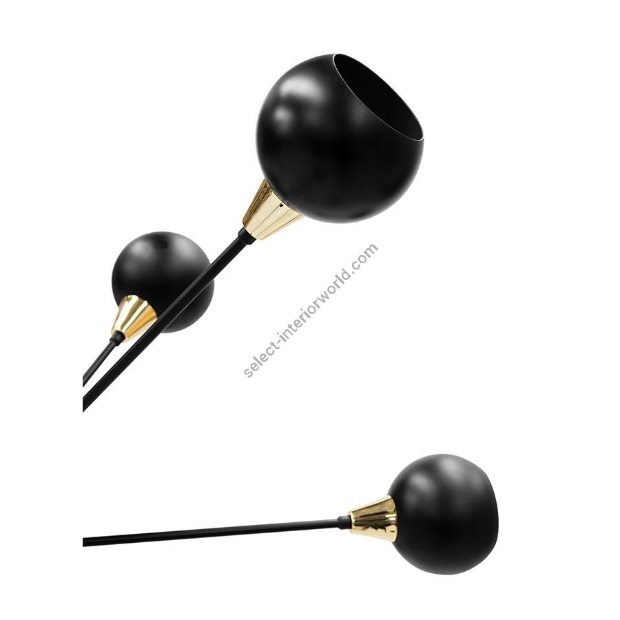 Blakey is a hanging lamp, which mirrors the era and modern art. It has a symbiosis between a strong presence to highlight a space, and the simplicity of the shapes, and their proportions adjusted to the reality of our day. It is presented in its standard version with a matte black structure, with shades and the central sphere highlighted in gold, an option given to give greater elegance.