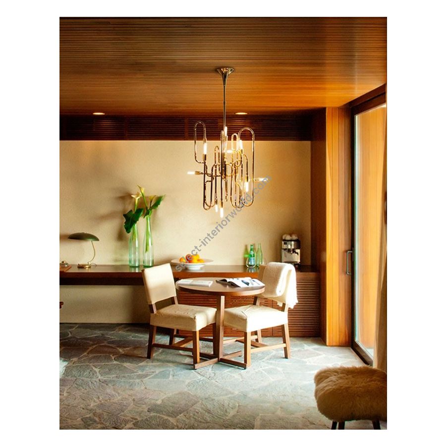 With an expressive harmonic beauty, Clark modern pendant light is one of DelightFULL’s most iconic pieces. This seemingly minimal lamp is handmade in brass, using the classic method of bending the brass twice into a rounded oblong shape, which allows for a bright cast of light. The standard finish is gold-plated, but it can also be customized in copper, nickel, or even receive an aged brass finish. The pole height is also changeable in order to better fit your decor needs. Clark is a great example of how suspended light can embody all the class of the mid-century modern age. It is the perfect hanging lamp for your modern dining room, mid-century bedroom, or even hotel bar.