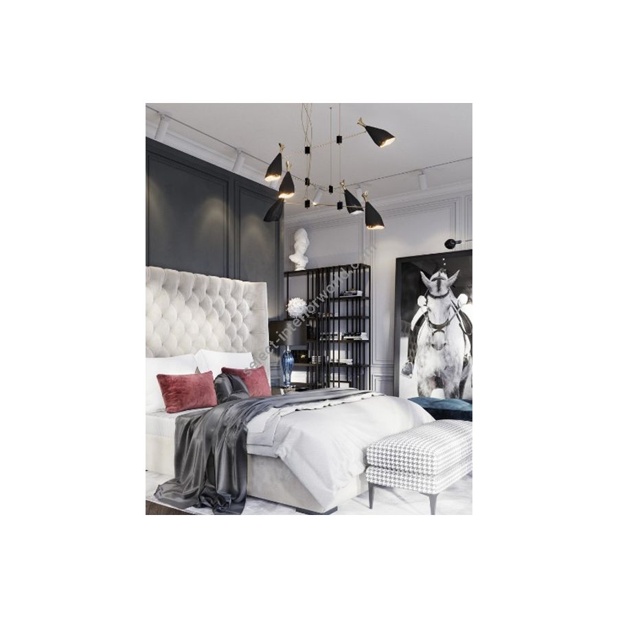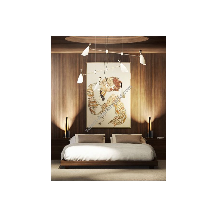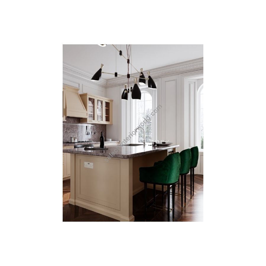 Duke Pendant is a modern pendant lighting design that boasts a heavy nostalgic 70s groove vibe. Inspired by the simplicity of the 1970s, DelightFULL’s designers were able to create an iconic modern ceiling light that suits the most demanding setting. Produced in Portugal, it is handmade in brass and aluminum. The body, made of brass, has both a matte black and a gold-plated finish, while the shades are lacquered a glossy black on the outside. The inside is matte white, but it can also have a gold powder paint finish. It is a stunning bedroom ceiling light, but this large ceiling light can also be considered for other settings, such as a mid-century modern living room.