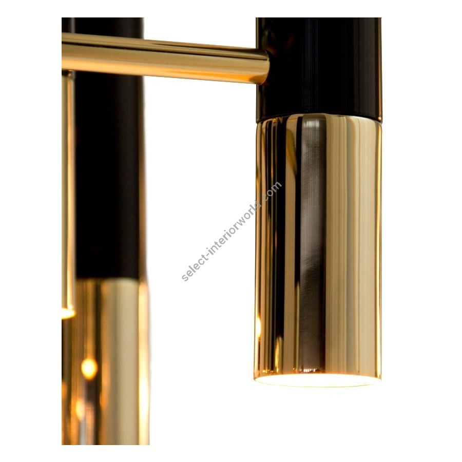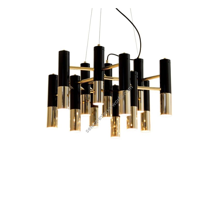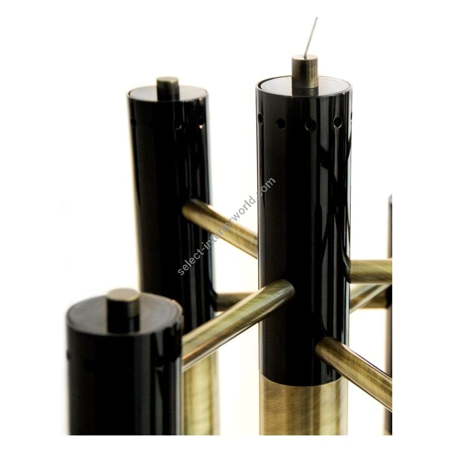 Ike suspension lamp has a distinctive but easily recognizable design, ideal for every single mid-century modern interior. With its clean lines, this dazzling lamp is handmade in brass and aluminum and features a glossy black and gold plated finish, representing a high-quality craftsmanship. It is 15 inches tall, but its steel cord can be customizable on purchase, being flexible up to 39.4 inches. Highly recommended to use with a dimmer switch to cast a smoother light, this modern brass lamp is perfect as a dining room chandelier lighting or to be used in a hotel lobby.