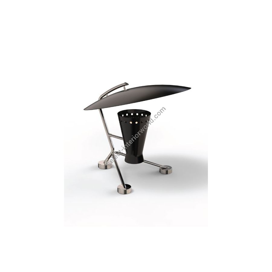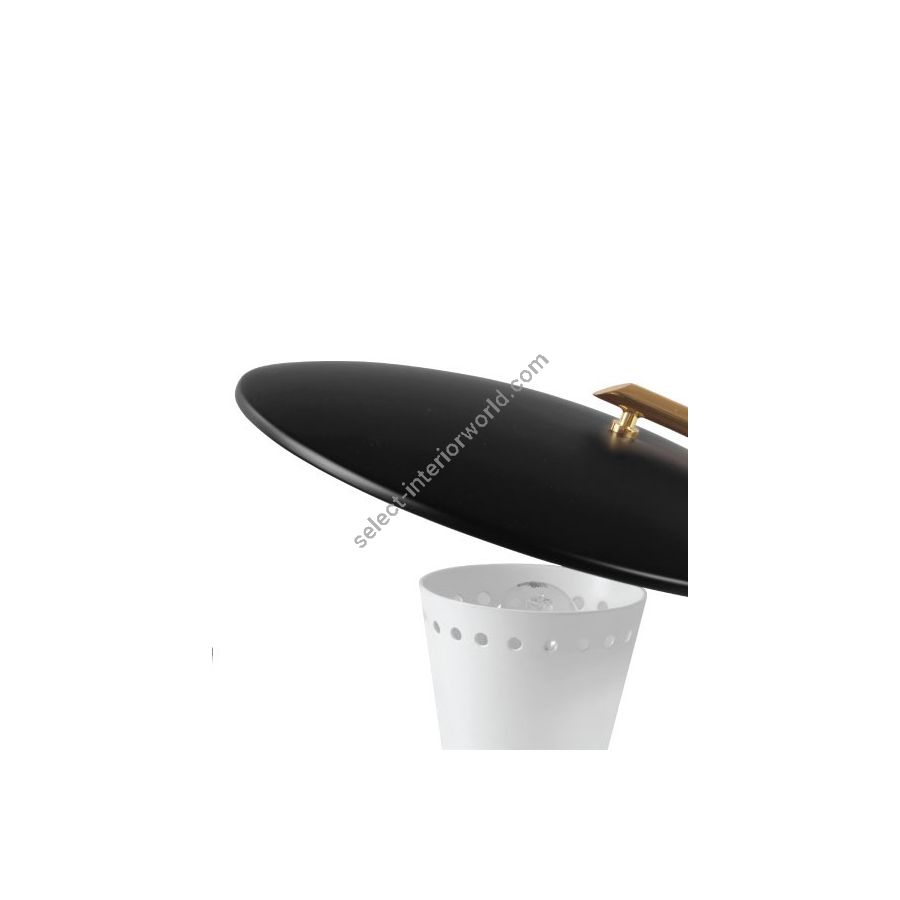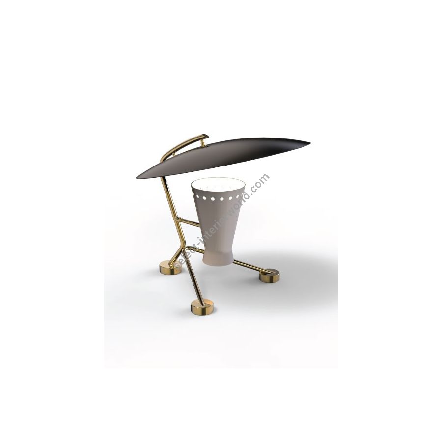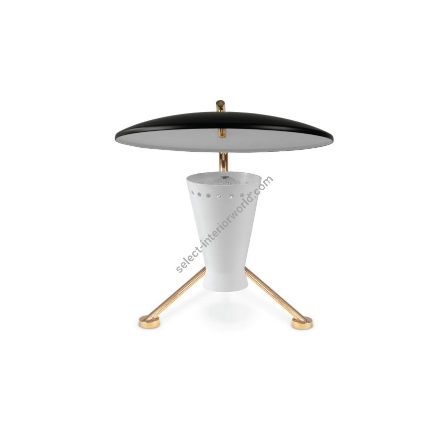 Representing everything that a tripod table lamp should be, Barry mid-century desk lamp is a handmade piece produced in Portugal by some of the finest artisans in the business. This brass lighting design features a shade and a top cover made in aluminum, top coated in matte black and matte white, which can be customized. The shade has a nickel plated finish, emphasizing the contemporaneity of this fine bedroom table lamp. Going as high as 13’, this is fantastic task and reading light for bed.