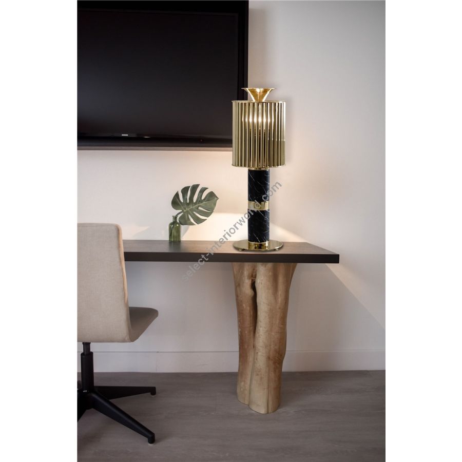 A majestic tall table lamp, Donna has come to redefine everything we have ever seen in the lighting design world. Almost 28 inches high, this brass desk lamp is much more than that. Handmade in brass and Estremoz marble, both the body and the shade received a gold-plated finish in order to emphasize its luxurious characteristics. Probably DelightFULL’s most exclusive design, this gold desk lamp features elegant handmade details all around the shade, giving it a Hollywood glamorous feeling. With an exquisite design, it suits any classic entryway or dining room. It is also the perfect table lamp for living room environments.