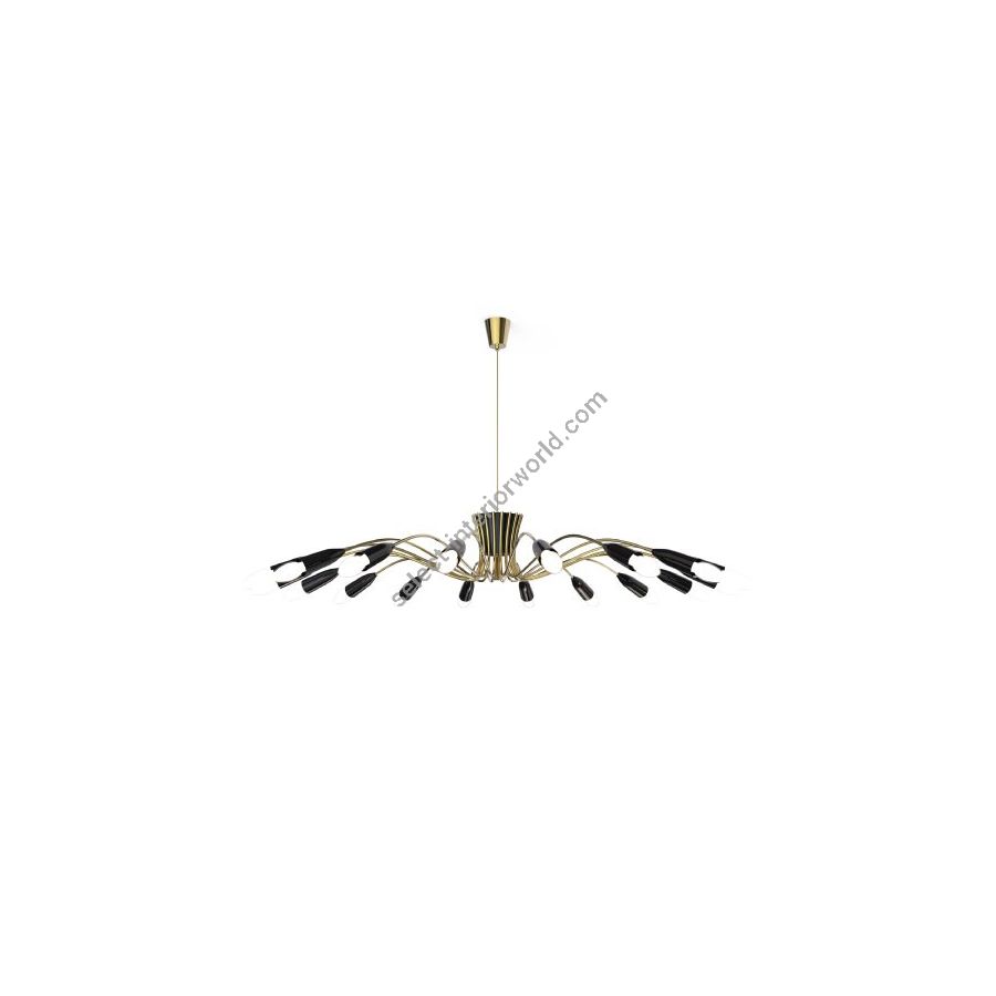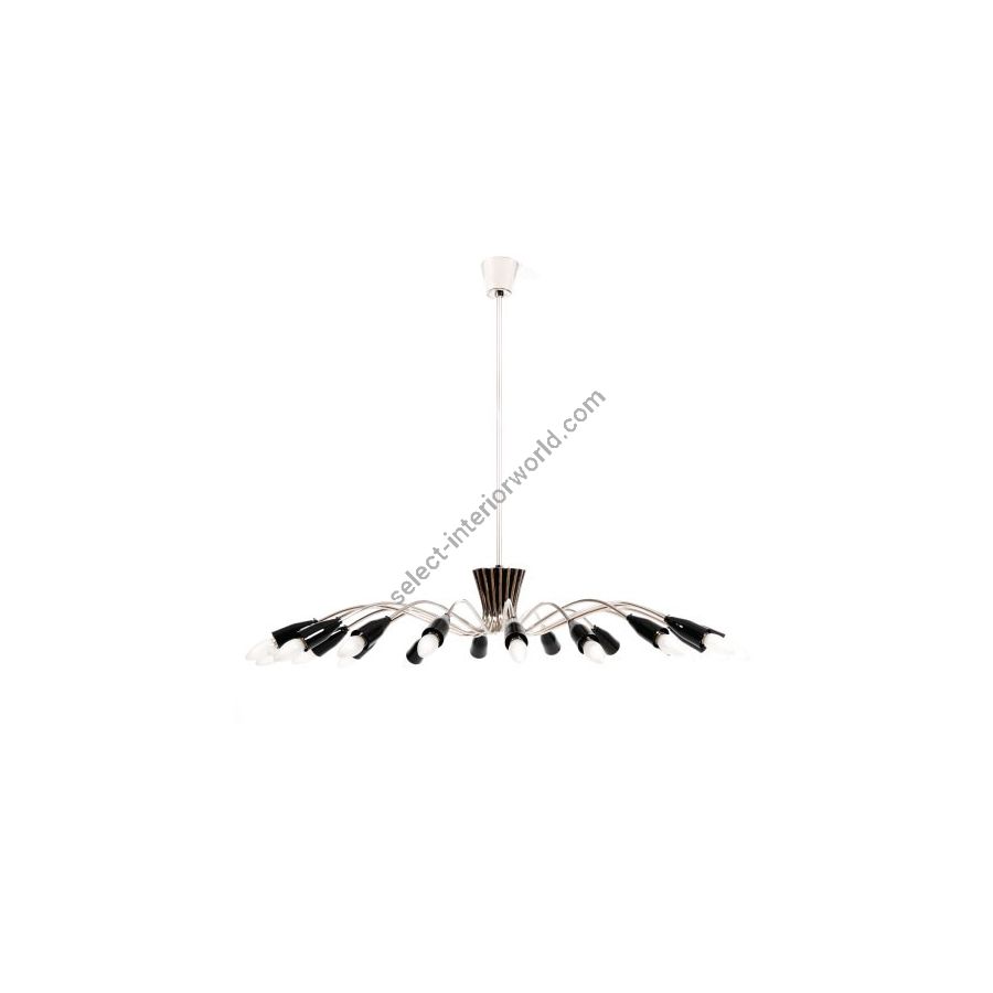 Norah is a mid-century modern lighting design that was inspired by the 50s decor. This modern sputnik chandelier light is the perfect combination of a mid-century modern design and a minimalist design. The standout feature on this 17-light brass chandelier finished in nickel plated is the delicate form of Norah’s arms. A glossy black finish blends well with naked light bulbs for a refined and more personalized look. The bulb holders in aluminum can be customized in any RAL color of your choosing. This brass chandelier can serve as an accent piece in a wide range of styles, but it will look better if you use it in your Scandinavian style living room.