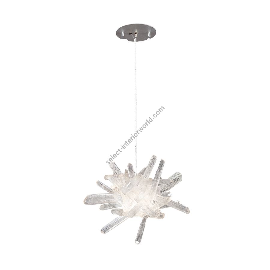 Building on glass techniques over 2000 years old, and using the core element of natural quartz, the spires on this LED drop light is worked by hand at over 2000 degrees. The raw crystal spires are then rough cut and hand polished to expose the inner core to light. LED bulb recommended