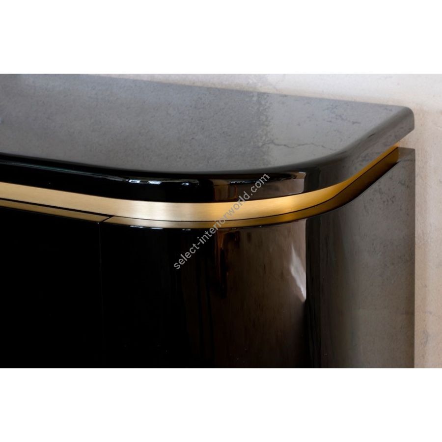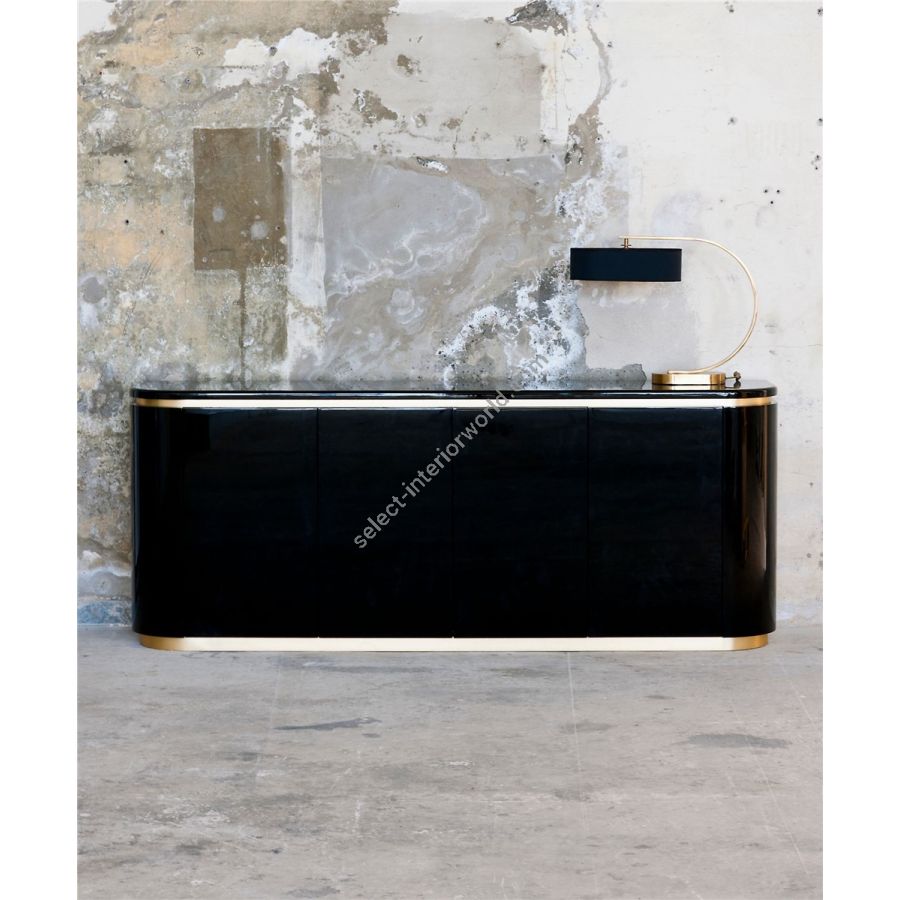 Mat or gloss lacquered structure with details in satin brass or gloss brass. Interiors in mat lacquered for the mat version, gloss lacquered for the gloss version.| Dimensions (HxWxD): | cm: 88x222x44 / inch: 34.65"x87.4"x17.32" |