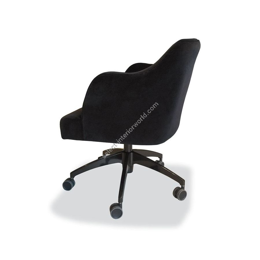 Fabric cover available in a wide range of fabrics. Swivel gloss black lacquered base or gloss chrome.| Dimensions (HxWxD): | cm: 84x61x64 / inch: 33.07"x24.02"x25.2" |