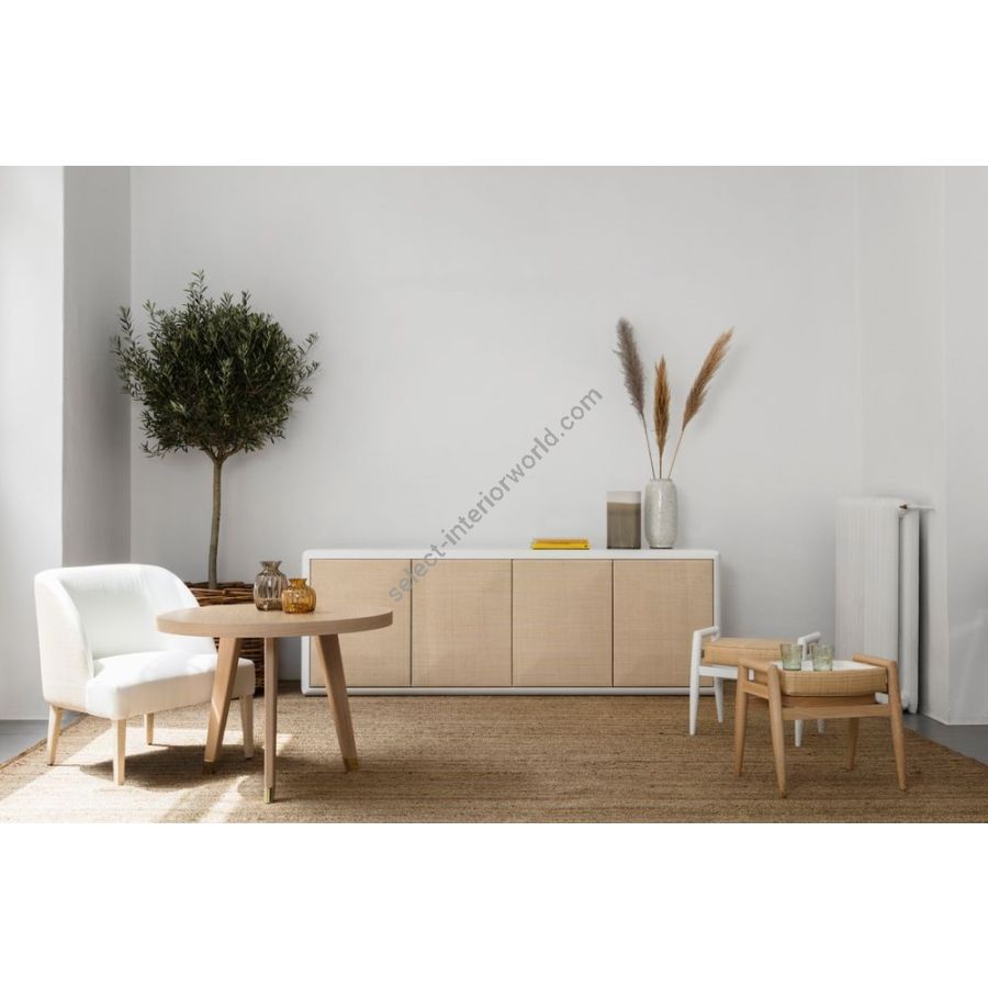A signature piece of Collezione Riviera, Colorado features the precious shapes of pure and well-cut gems that smoothly contrast with the simplicity of the raffia doors’ configuration. The naturalness of the natural fiber and the matt lacquered frame and interiors, Colorado combines sophisticated workmanship with a contemporary design.