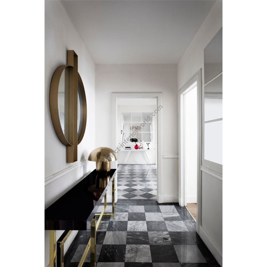 Charlotte is a refined double side console. Rich in character, the console is the ideal element that adds energy to the entrance path or to those “psychologically” separated areas within the same room. The particularity of this console is the sculptural metal base which comes with crossing shapes. Its details turns Charlotte into an unforgettable and unmistakable design piece.
